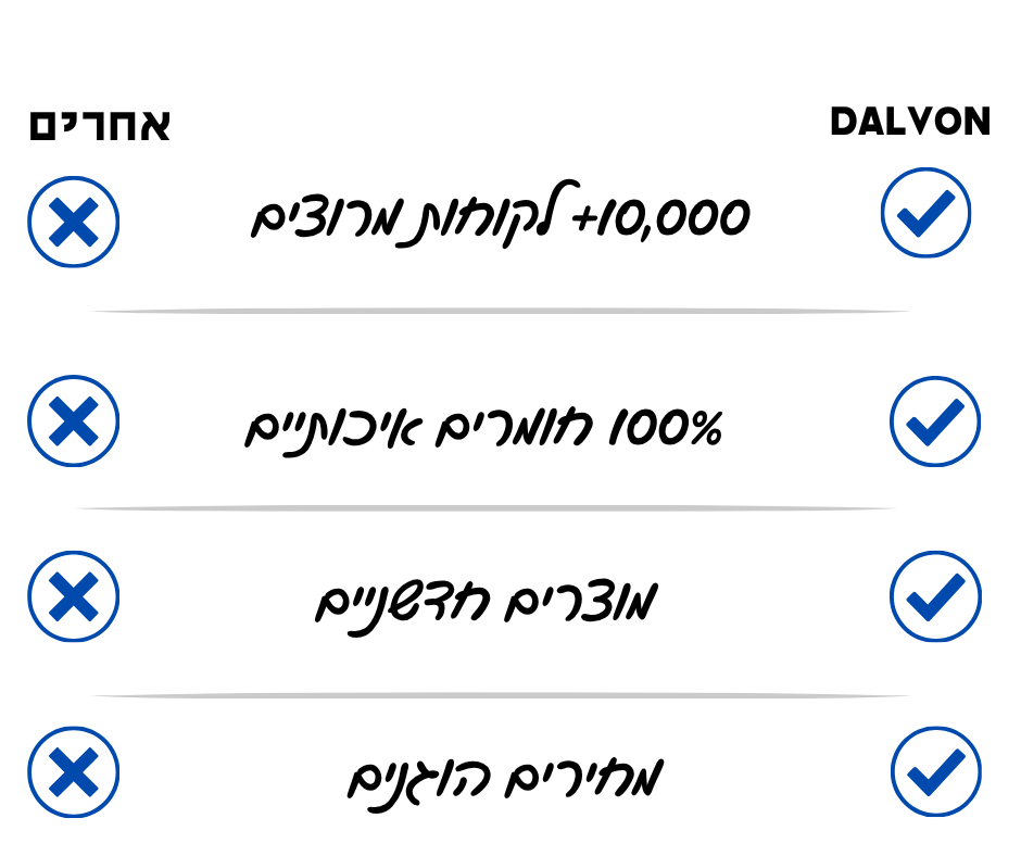 DALVON נולד מתוך רצון להביא סטנדרט חדש לעולם הקניות אונליין – מוצרים איכותיים וללא פשרות.